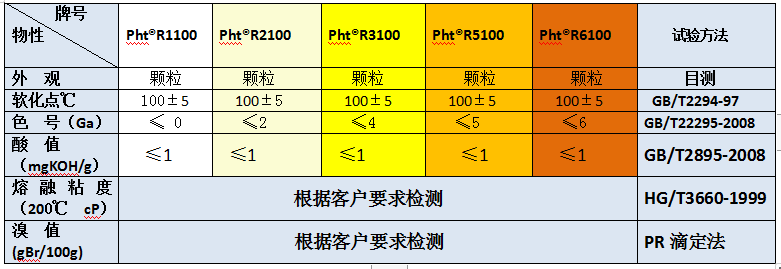 Pht?-R1100、Pht?-2100、Pht?-3100、Pht?-5100、、Pht?-6100精C5系列石油樹脂是適用于熱熔型路標漆的改性石油樹脂。它能增強涂料的韌性、硬度及附著力,并形成平滑的漆面,而且通過添加助劑,使樹脂在四季中始終處在一種穩(wěn)定的狀態(tài),并和松香類樹脂、萜烯類樹脂、碳九石油樹脂混溶性佳。在高檔油漆復(fù)配中,可使油漆漆膜形成耐水、耐酸耐堿、耐紫外線、耐化學(xué)品的特性,并使外觀光亮度及干燥性都有明顯改善,其中Pht?-R1100、Pht?-R2100經(jīng)過氫化或半氫化的碳五石油樹脂,外觀顏色水白色,200度3個小時熱穩(wěn)定性不變色。是生產(chǎn)更高檔品質(zhì)的熱熔路標涂料的助劑,性能更佳。